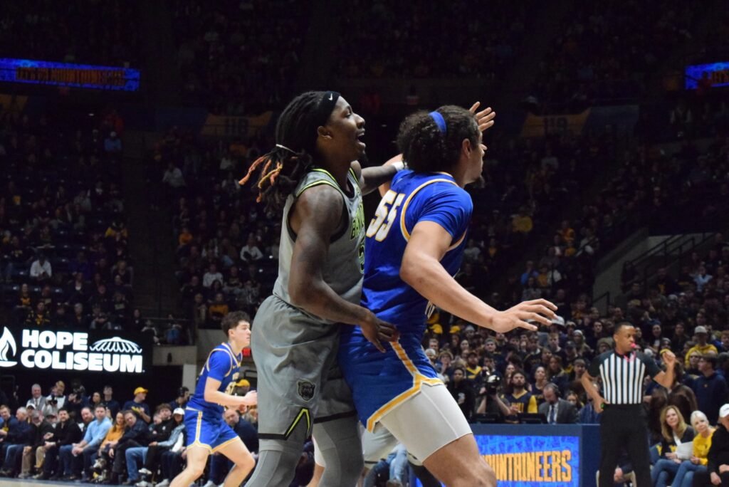 Carr and Dan Skillings Jr. scored the first two baskets after the break to push the Bears’ lead to 12. WVU responded with a 14-5 spurt, capped by Chance Moore’s rebound basket, to pull within 47-44 with 11:29 to play.